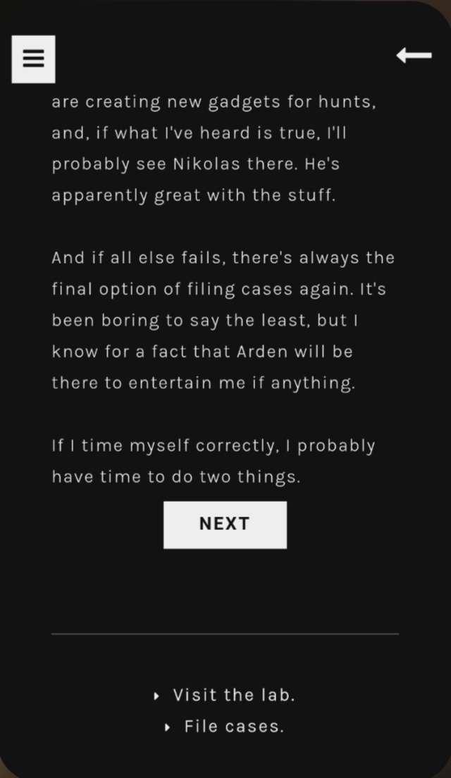 it’s a very, very good game! the way you write your characters is so admirable, and I can’t wait for the next chapter! <33