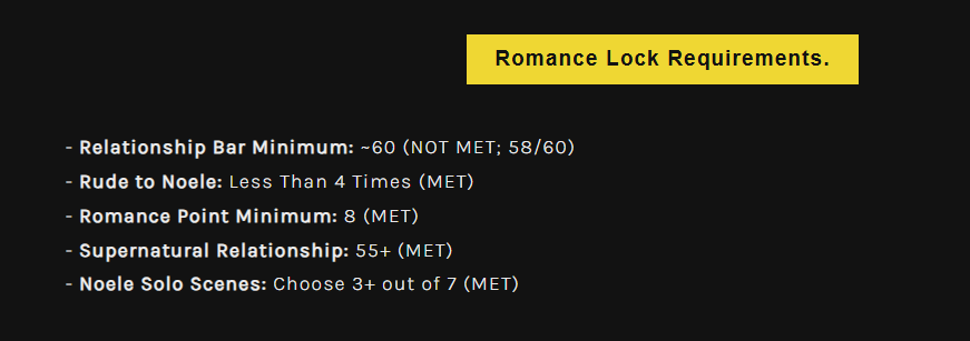 This is so painful I got so close to locking in B`s romance but I missed the requirements by just a little bit